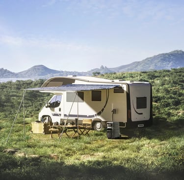 Fora de casa, o Delta Pro 3 pode ser usado para alimentar trailers e vans. Ele possui uma tomada TT-30R, que fornece 120V / 30A para todo o sistema elétrico do veículo, incluindo aparelhos de alta potência como ar-condicionado e micro-ondas. O DP3 também conta com uma porta Anderson de 12V/30A para alimentar dispositivos de baixa tensão DC, como luzes, tomadas USB e geladeiras portáteis. Isso torna o DP3 uma solução multifuncional e atraente, substituindo construções complexas de vans com múltiplos componentes.